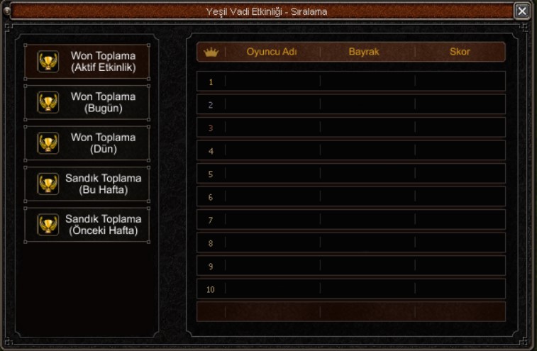 Günlük Won Toplama Sıralaması ile ekstra WON ve haftalık Sandık Açma Toplama Sıralaması ile sandık kazanma şansı!